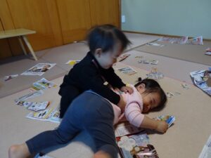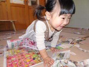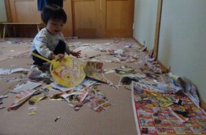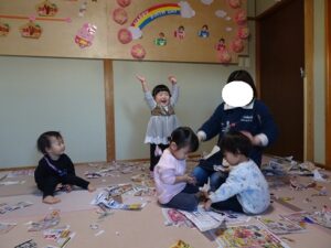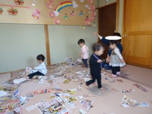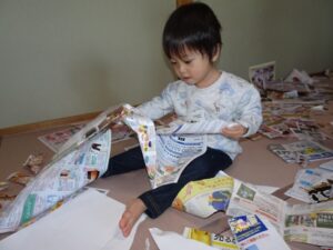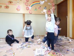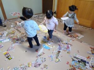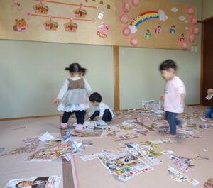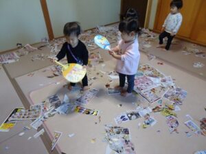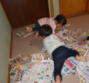 うさぎぐみさん、新聞遊びをしました![]()