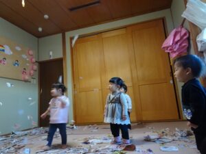 でも先生がチラシをちぎって桜吹雪をすると、、