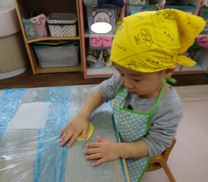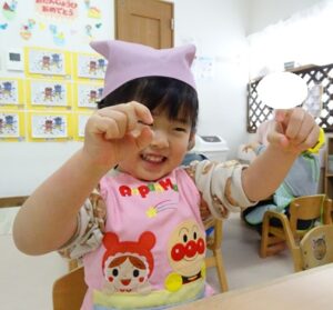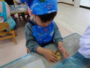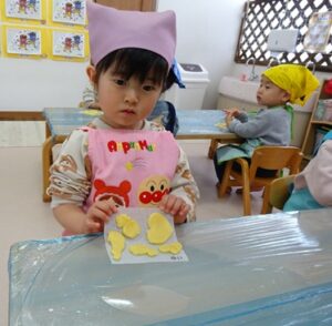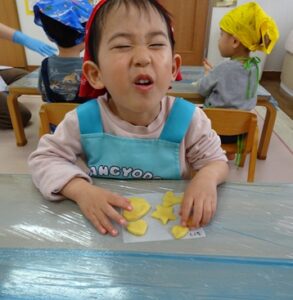 まず、先生が見本で型抜きをしてみますよ~![]()