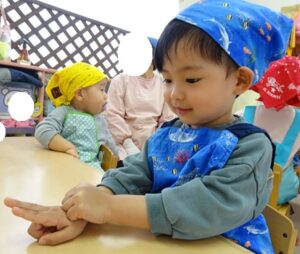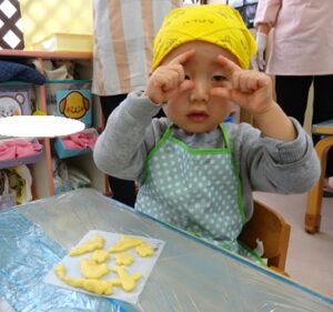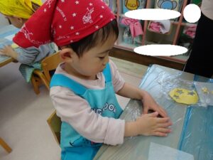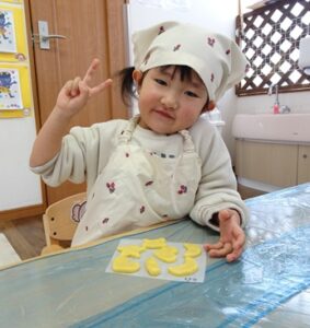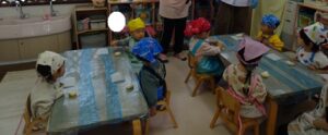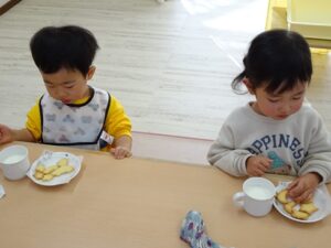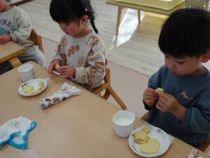 うさぎぐみさんは給食先生が作ったクッキーをいただきましたよ~![]()