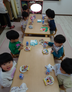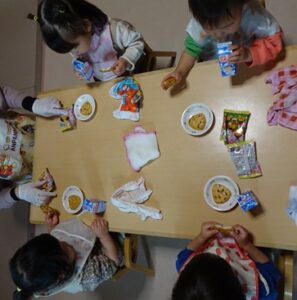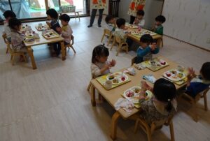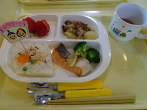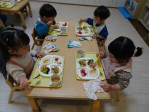 給食はプレイルームでみんなで食べますよ~![]()