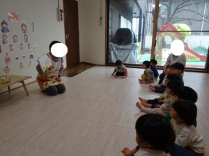 まず、先生がお雛様の絵本を読んでくれました![]()