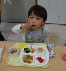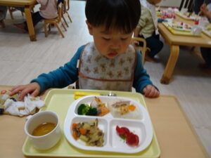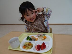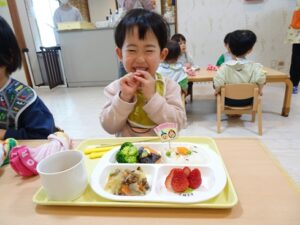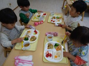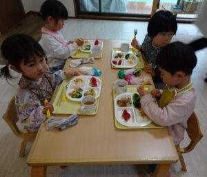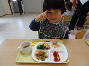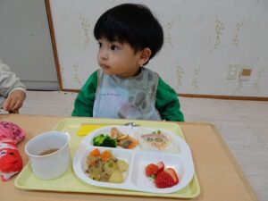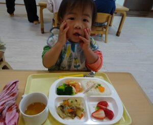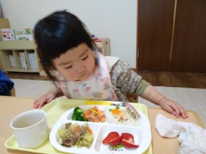 給食はプレイルームでみんなで食べますよ~![]()