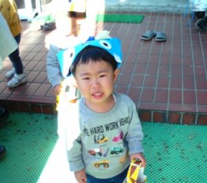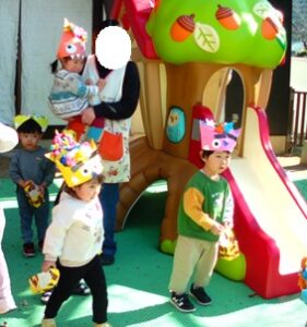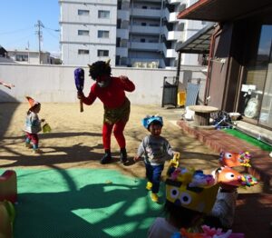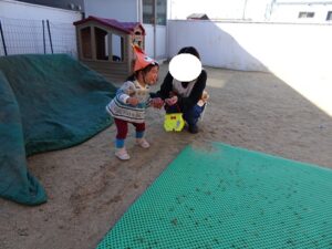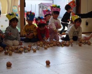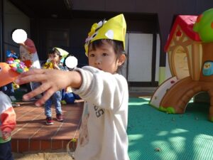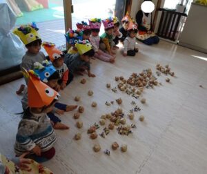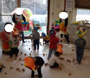 ゲームのあとは園庭で豆まき本番です![]()