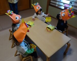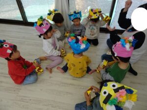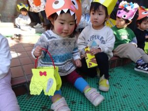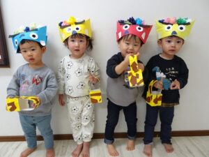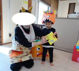 鬼のお面と豆入れを持ち帰ります![]()