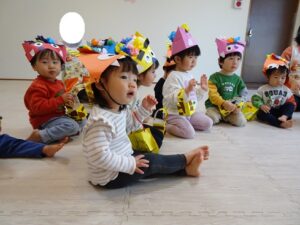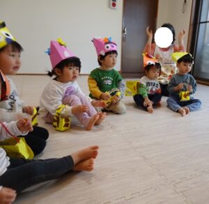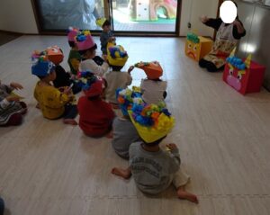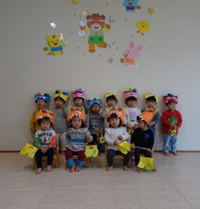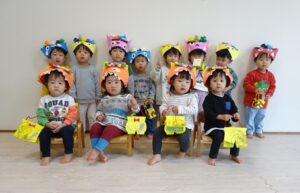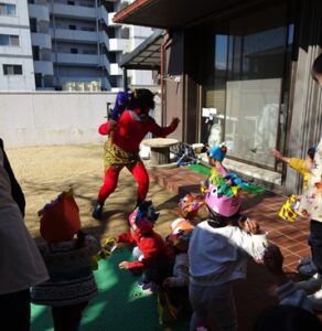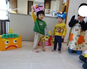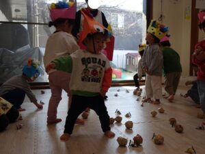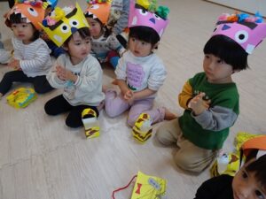 みんなで”鬼のパンツ”と”豆まき”の歌を歌います![]()