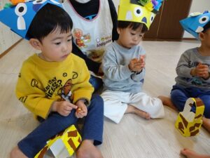 「きりんぐみさんのお面は自分で好きな色を選んだり