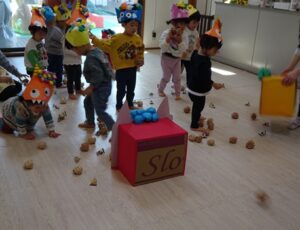 袋ごと園庭で投げています。