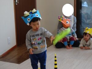 「この鬼さんたちに豆を投げてね!」