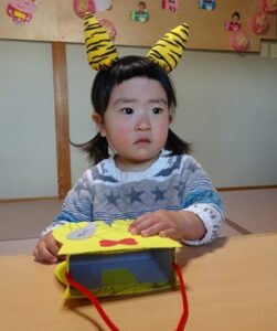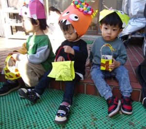 鬼のお面と豆入れを持ち帰ります![]()