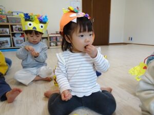 みんなで”鬼のパンツ”と”豆まき”の歌を歌います![]()