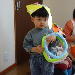 「きりんぐみさんのお面は自分で好きな色を選んだり