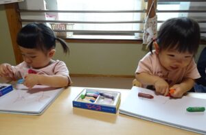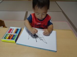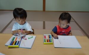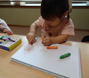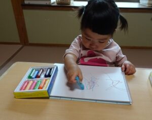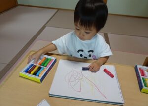 クレヨンを走らせる姿は