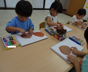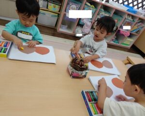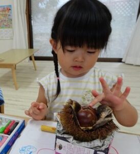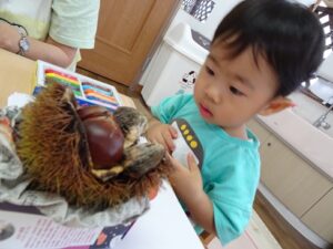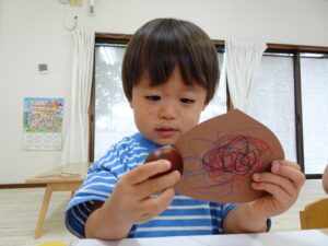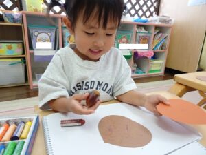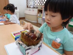 昨日、きりんぐみさんが製作で”栗”を作っていました