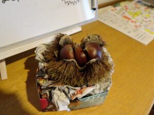みんなが観察した栗は玄関に飾っています