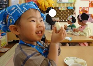 「今日のクッキングは”さつまいもおにぎり”を作りまーす!」