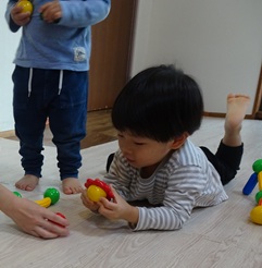 プレイルームの真ん中で”だんごむしのポーズ”をします![]()