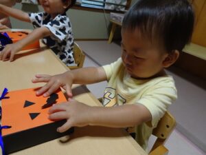 正しい向きに直して貼るお友だちもいて