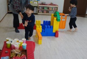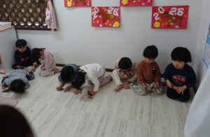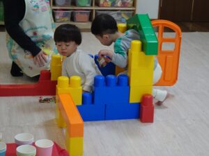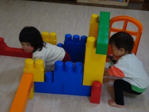 うさぎぐみさん、プレイルームでボール遊びをしました![]()