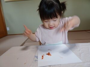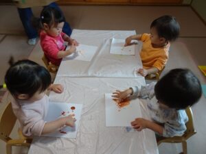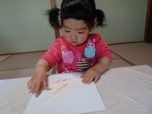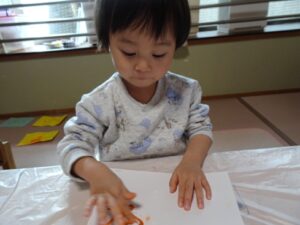 指に絵の具をつけてスタンプする”指スタンプ”で