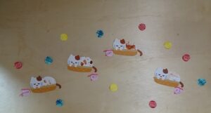 「きりんぐみさんのお面は自分で好きな色を選んだり