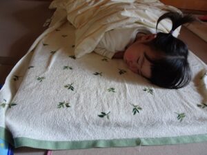 防災頭巾を被るのが嫌で泣いていたお友だちも