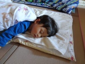 防災頭巾を被るのが嫌で泣いていたお友だちも