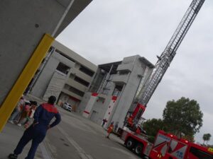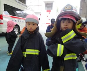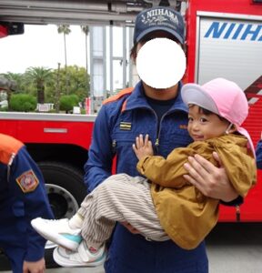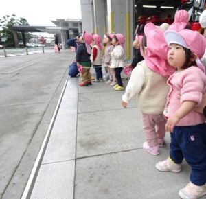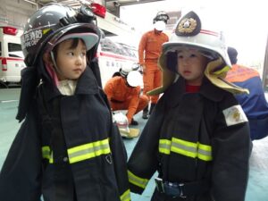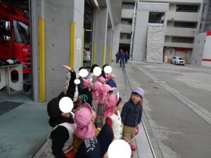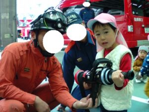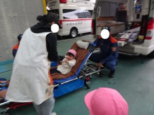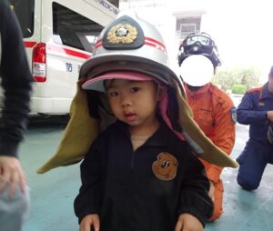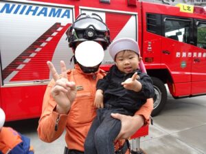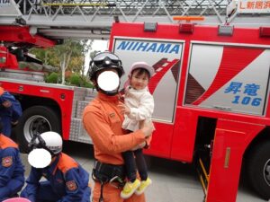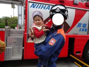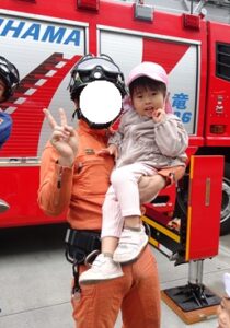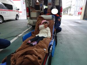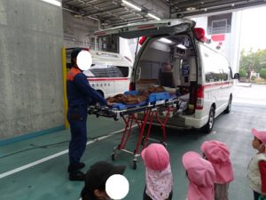 「救急車、乗ってみたい人ー?!1人乗れるよ~!」