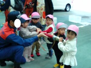 早朝保育時に地震が発生した時の避難の仕方を知る。