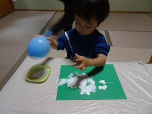 先週みんなで遊んだ時、風船マットが大好きなお友だちと