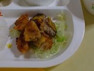 もみじ揚げは白身魚(今日はメルルーサ)に