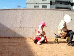 三輪車に乗ったり、、