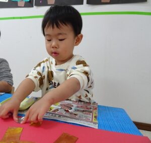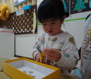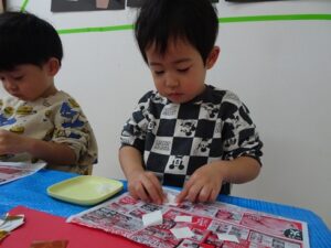 ④周りの模様になる折り紙をはさみで切ります![]()