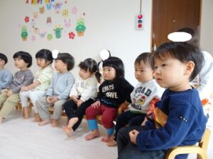 きりんぐみさんも先生のお話を聞いて
