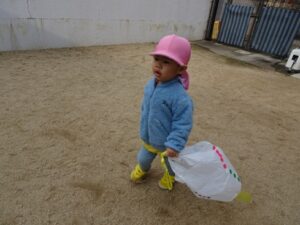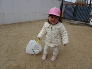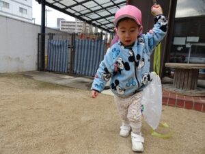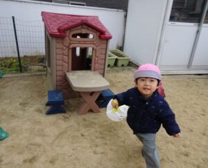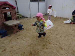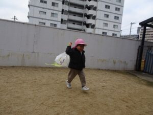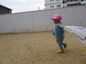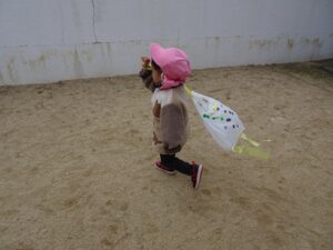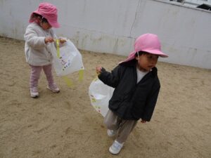 みんなが作った凧を持って園庭へ行きますよ~![]()