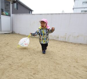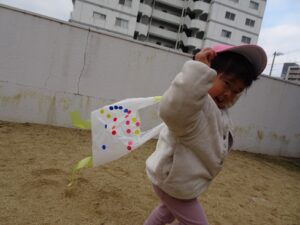 「今日は園庭で凧揚げするよー!」