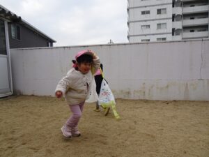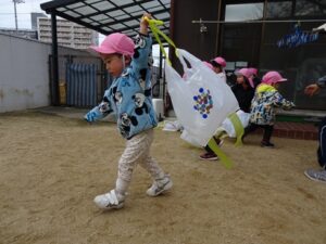 みんな園庭中を走って凧を飛ばしました![]()