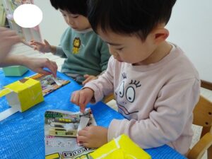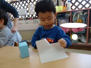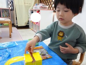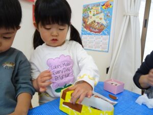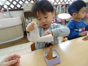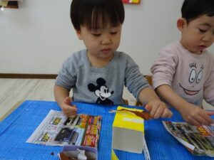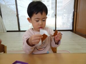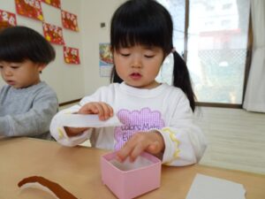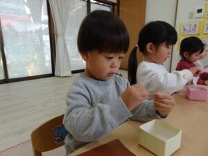 うさぎぐみさん、節分で使う豆入れの製作をしました![]()