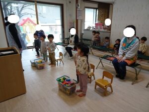 在園児のお友だちも椅子に座って上手に参加できます![]()