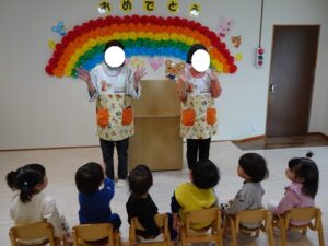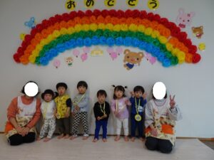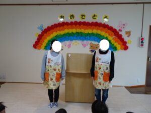「みんな今日から1つお兄ちゃん、お姉ちゃんになりましたよ」