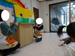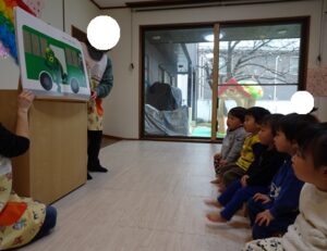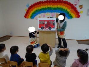 先生の紹介の後は、大型絵本を見ました![]()
