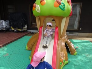 今日はハウスの遊具が人気でみんなハウスの周りで遊んでいました![]()