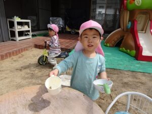 今日はきりん組さんは園庭遊び、