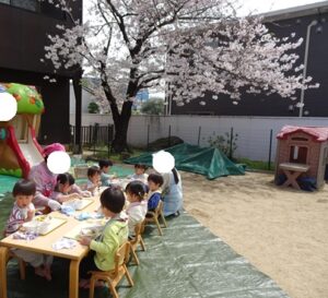 きりんぐみさんは園庭で遊びました![]()