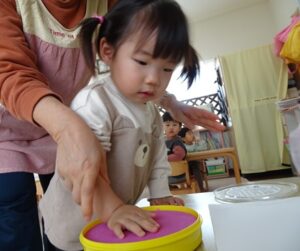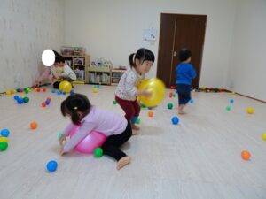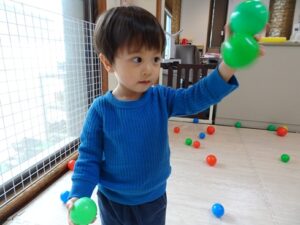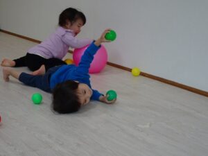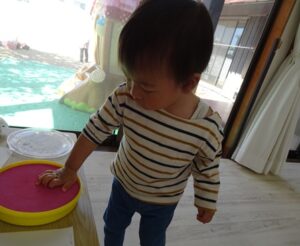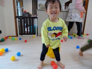 遊ぶ姿がみられました、自分の思ったように出来た時には