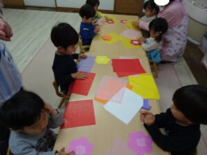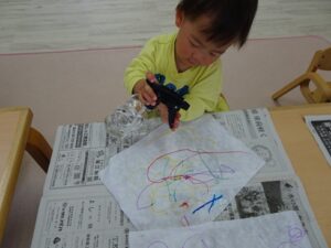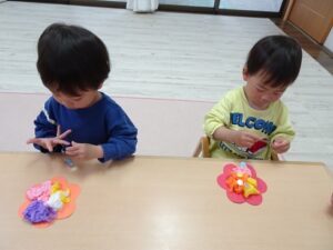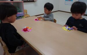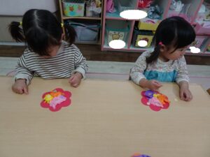先日ちょうちょの製作をしたきりんぐみさん![]()